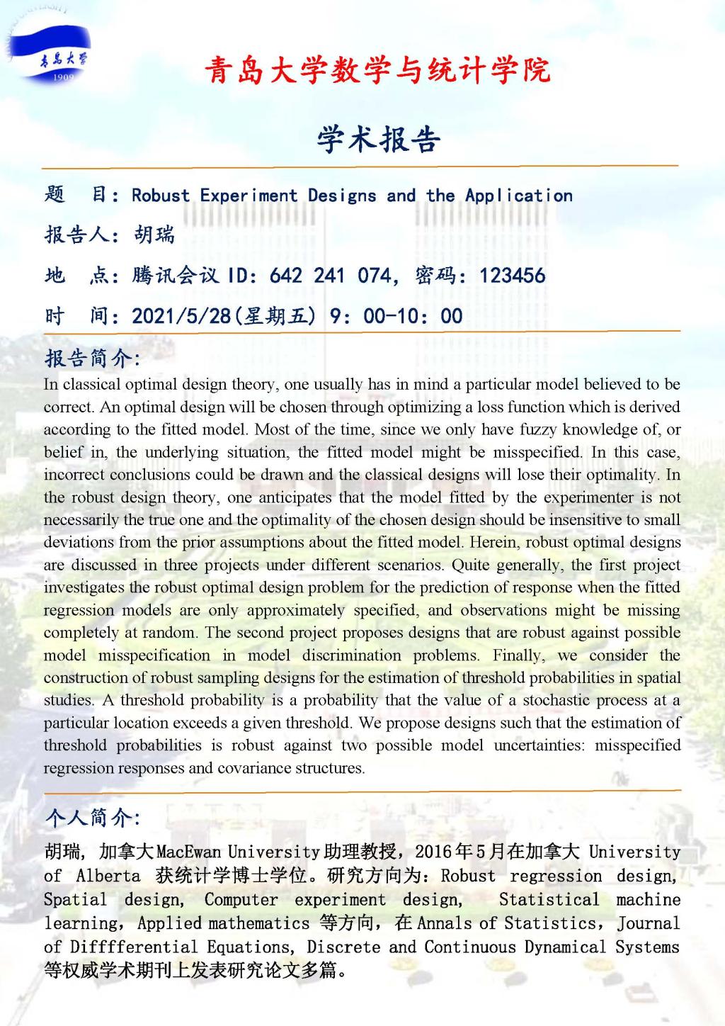 Robust Experiment Designs and the Application