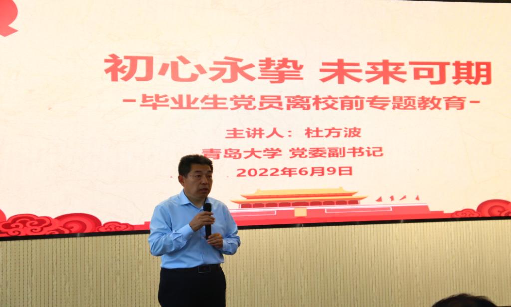 6月9日下午,校党委副书记杜方波参加tyc7111cc太阳成集团“初心永挚 未来可期”2022届毕业生党员离校前专题教育活动,为同学们讲授“毕业一课”。 tyc7111cc太阳成集团党政领导刘琪、高红伟、张国辉、魏小平、李新民、丁洁玉以及各支部书记、教师党员代表和毕业生党员参加了此次活动。