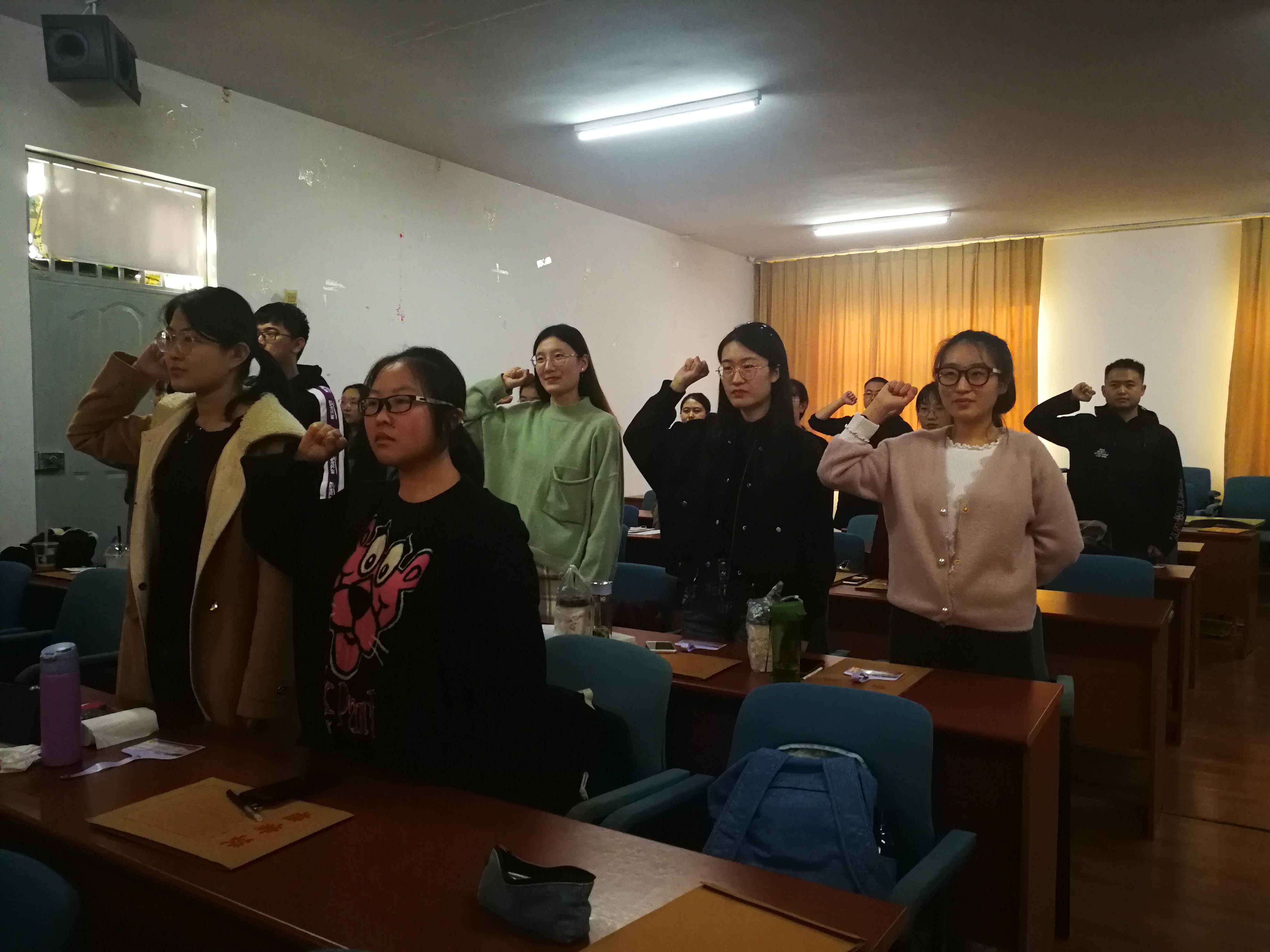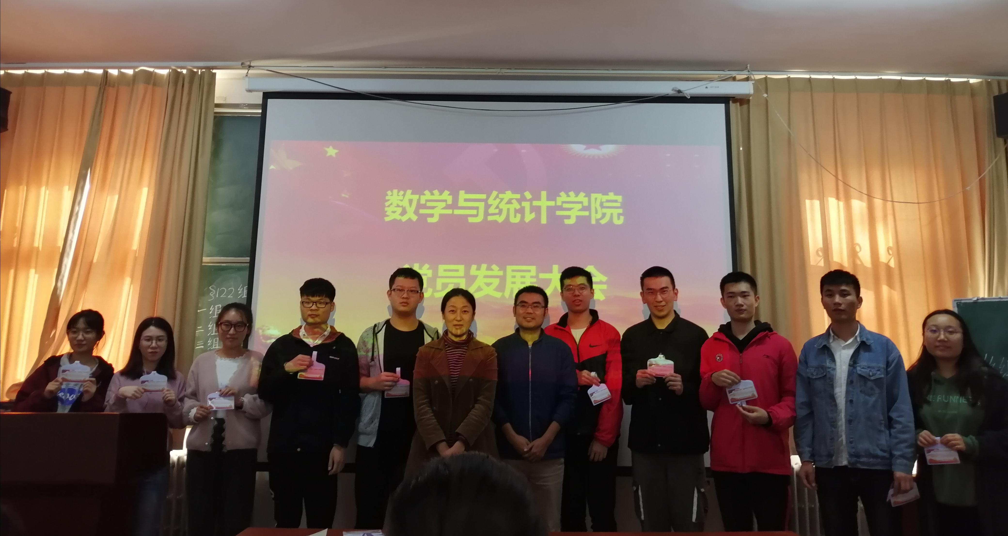 10月31日下午,数学与统计学院学生党支部举办“不忘初心”集中学习及“亮身份、做表率”挂牌活动。学院党委副书记张雪蕾、学生支部书记王珺鹏及全体学生党员参加,活动由学生党支部书记王珺鹏主持。