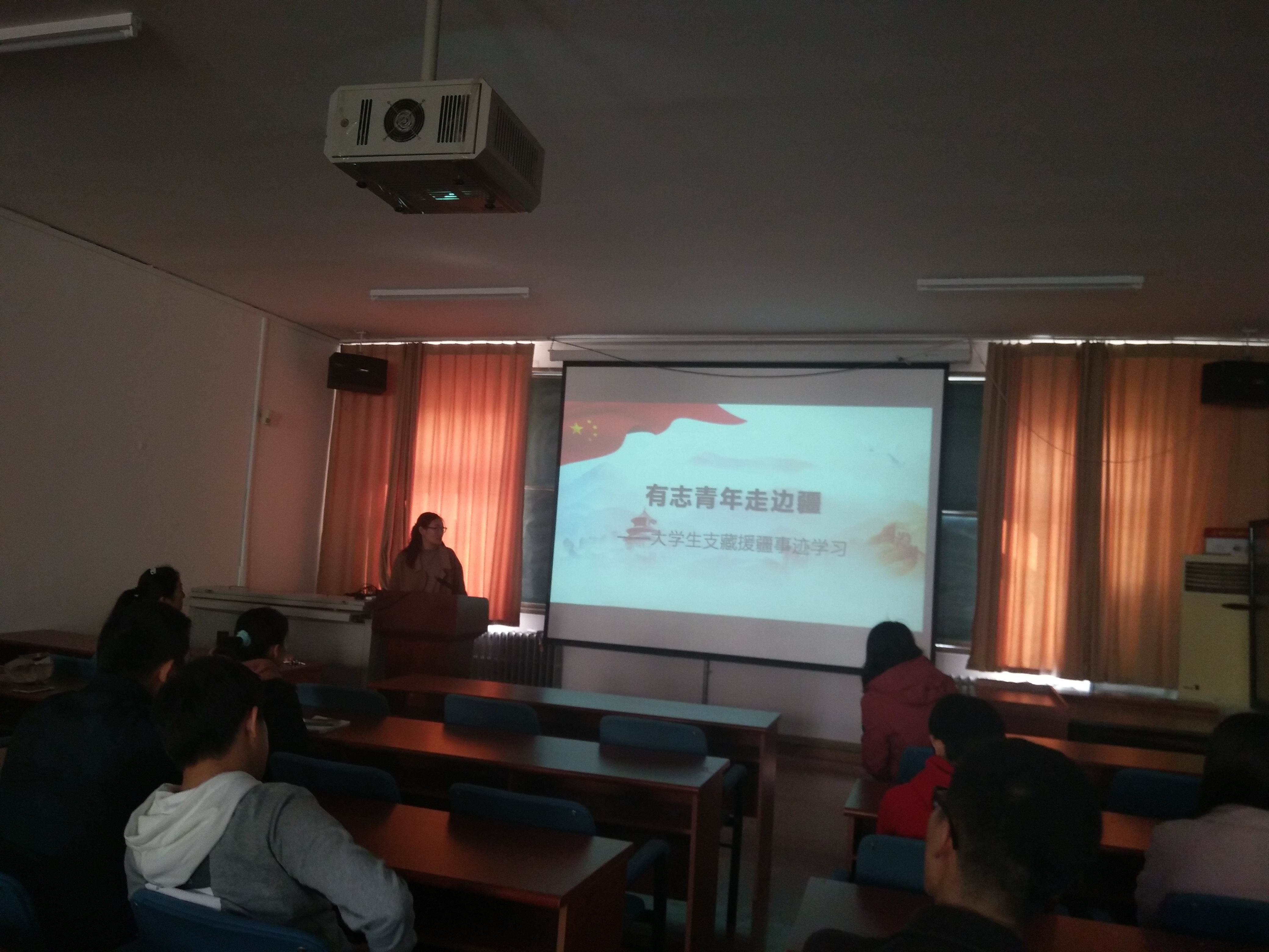 研三党员王元元带领大家学习了优秀大学生支藏援疆事迹,鼓励优秀青年毕业生积极响应国家号召到祖国最需要的地方去。张雪蕾要求广大毕业生党员发挥先锋作用 ,竭尽所能,贡献自己的绵薄之力,以青春之名,无悔奉献。