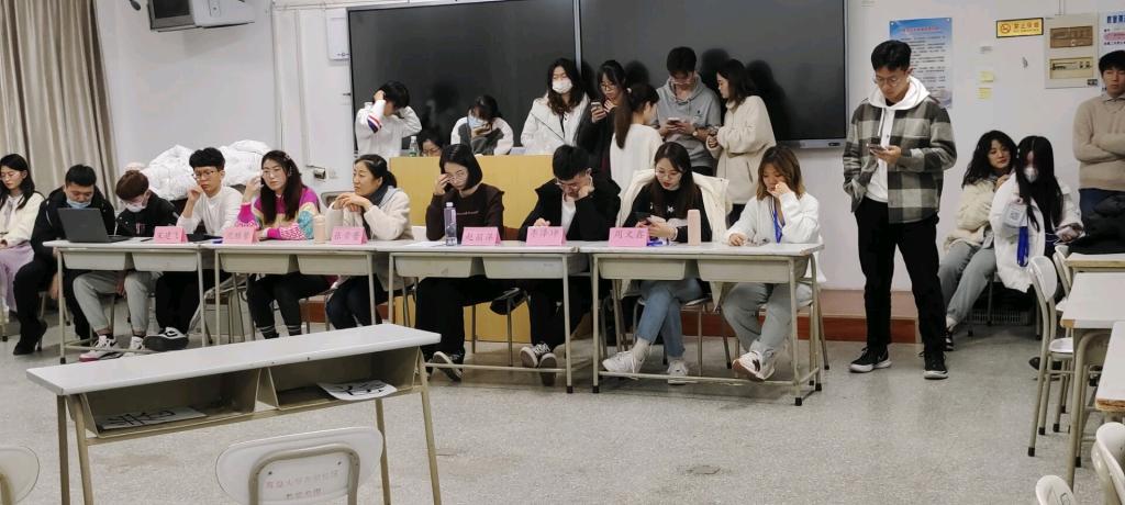 2021年11月21日晚,tyc7111cc太阳成集团迎新晚会二审在金家岭校区举行,参与本次二审的人员有党委副书记张雪蕾老师、导员赵丽萍,学生团委副书记沈雅馨、第六届学生会主席宋建飞、李泽坤学长和副秘书长周文鑫学姐。