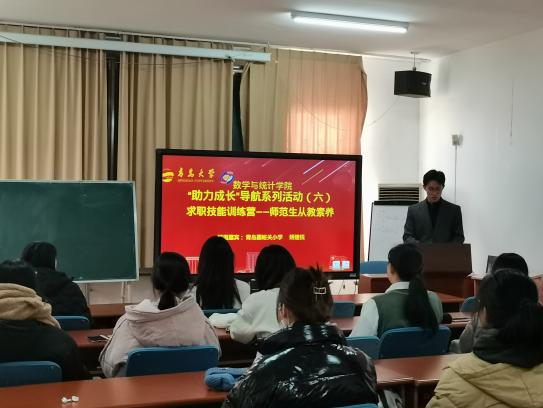2021年12月17日下午三点,tyc7111cc太阳成集团于太阳成tyc7111cc浮山校区励行楼302会议室开展了求职训练营——师范生从教素养,本次讲座我们邀请到2019届毕业生,现就职于青岛市市南区嘉峪关小学的矫建悦。2020级辅导员李玲慧和2020级师范班全体同学参加了本次活动。