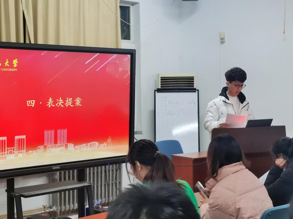 会议由19级轮值主席宋建飞主持,在简单介绍会议内容之后,组织各代表依次发言,提出自己相应的提案内容。各代表仔细阅读提案,及时发现问题,积极寻找解决的突破口,再经过讨论抒发自己的见解后,大家的提案有了针对方案与实行措施,最后由宋建飞统一宣读。