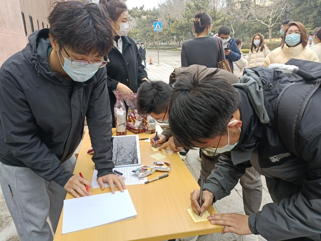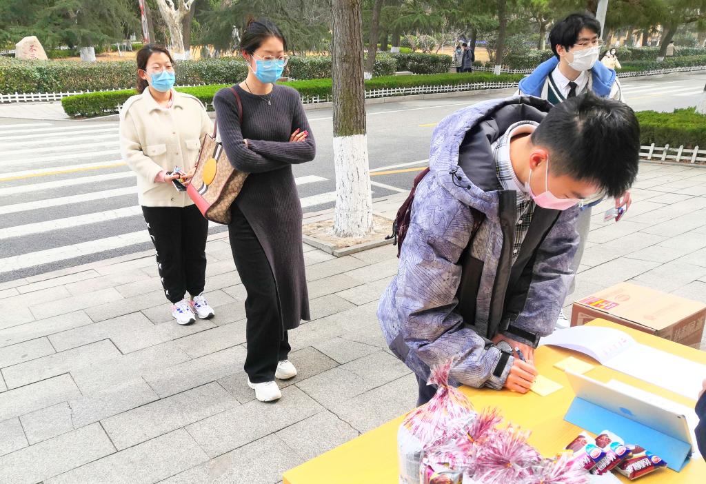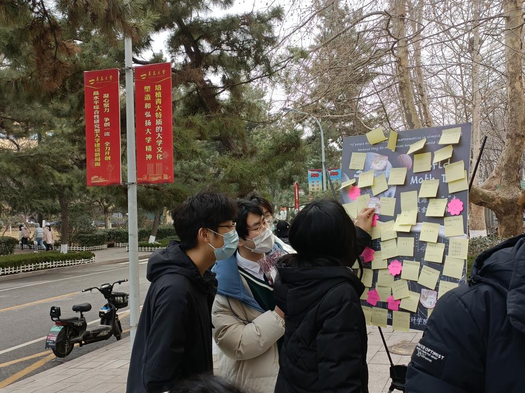 活动以工作人员分享π节由来开始,宣传数学文化,并邀请同学们参与有趣的数学小游戏,受到了同学们的热烈欢迎。在现场组织人员的维控下,同学们保持安全距离,排队有序的参与。活动的最后,同学们纷纷在展板上留下了美好的寄语,比如“数学是世界上最美的学科”、“国际数学日快乐,祝福tyc7111cc太阳成集团越来越好!”、“希望疫情早日结束,青岛加油!”、“早日解封,去看日出日落”等等。
