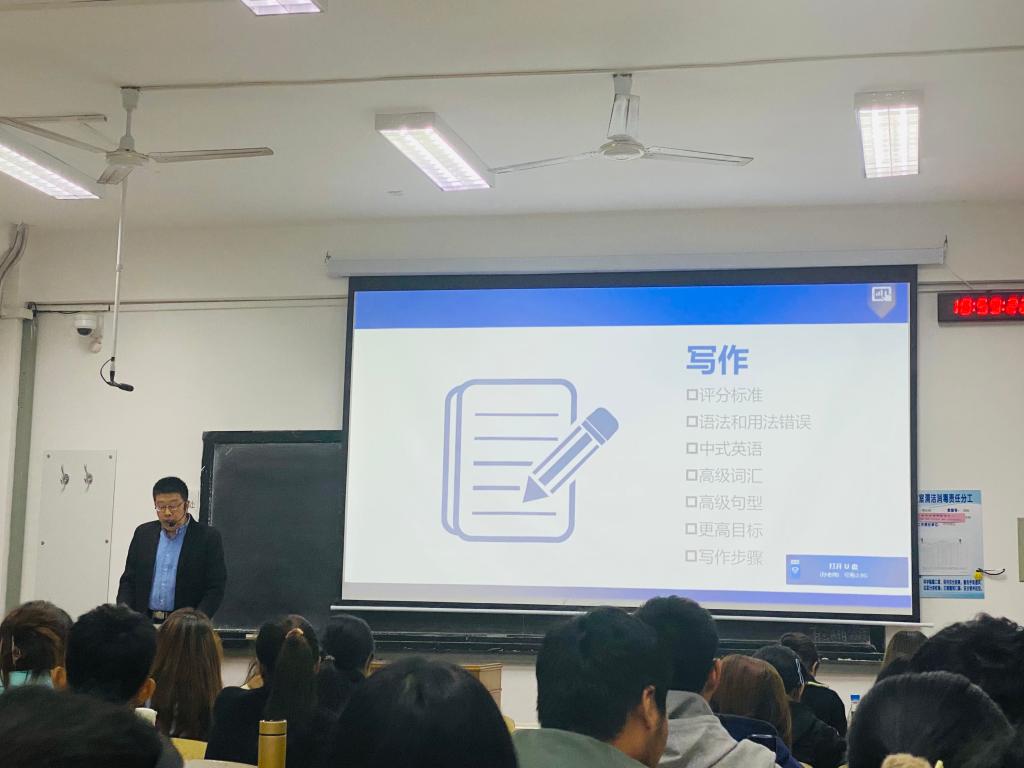 孙老师平易近人,生动幽默。从听力到阅读,再到作文与翻译,都为大家分享了自己独特而又实用的做题技巧,使得同学们既能在有限时间内保证正确率,还能提高做题速度。讲座期间,同学们认真聆听孙老师的独家绝招,并与孙老师积极地互动,现场氛围热烈。