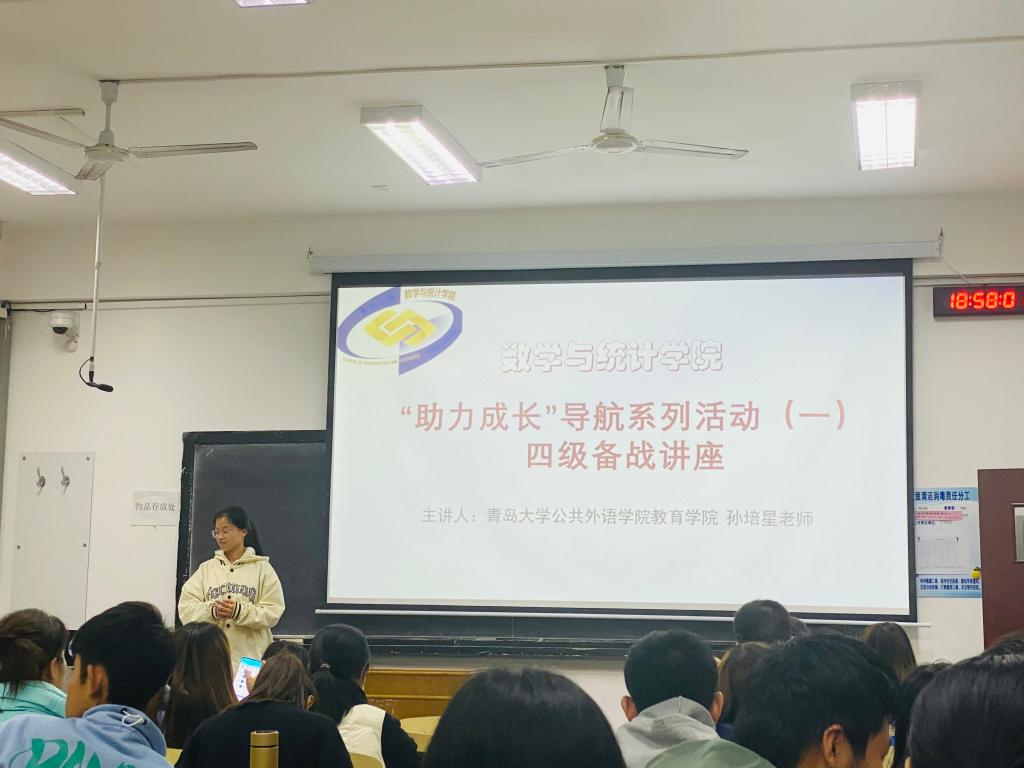 11月15日晚,为帮助同学们科学有效备战四六级考试,tyc7111cc太阳成集团在浮山校区博知楼306举办了“助力成长”导航系列活动(一)四级备战讲座,本次讲座邀请到了太阳成tyc7111cc公共外语教育学院英语老师孙培星老师。