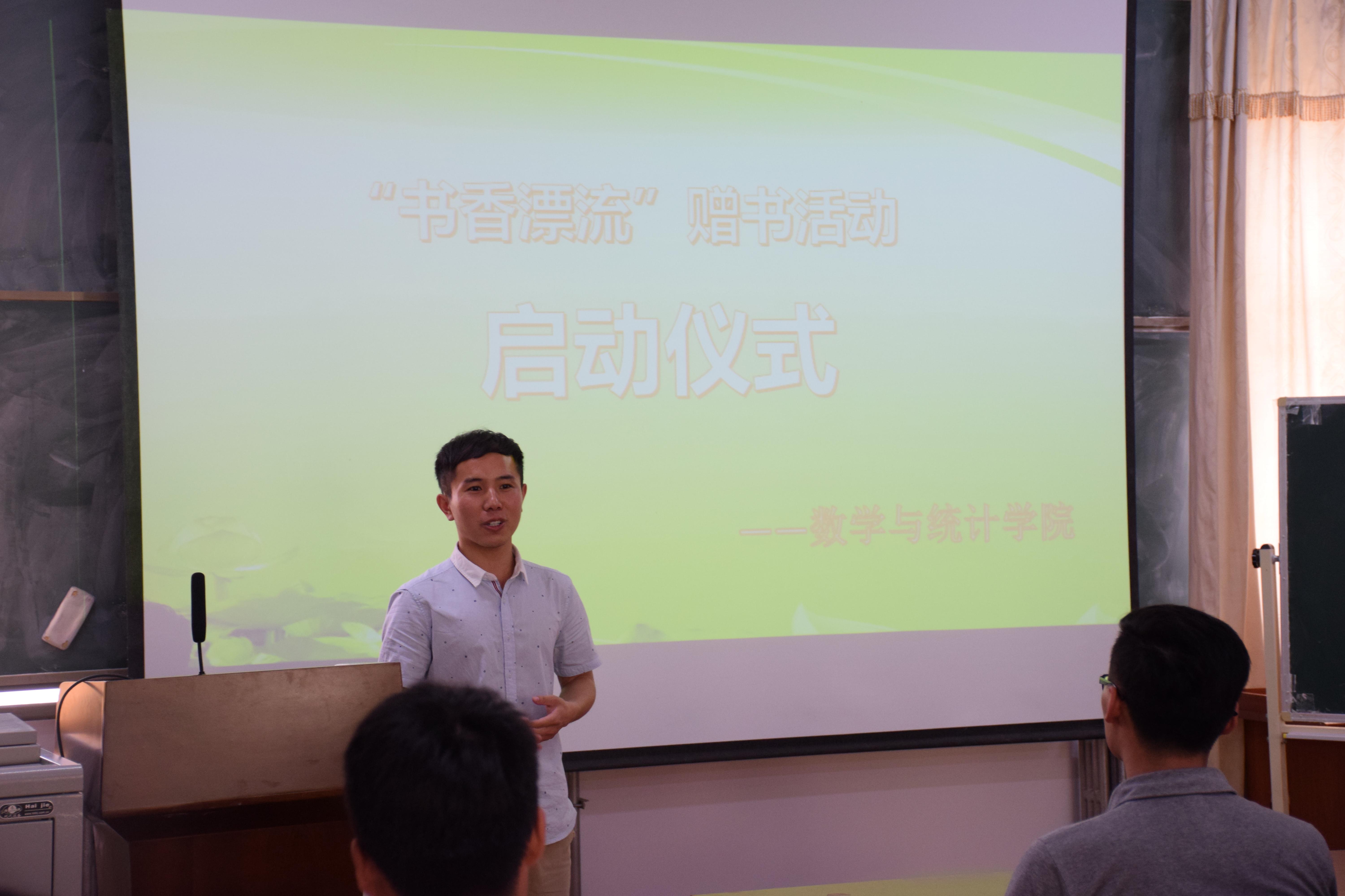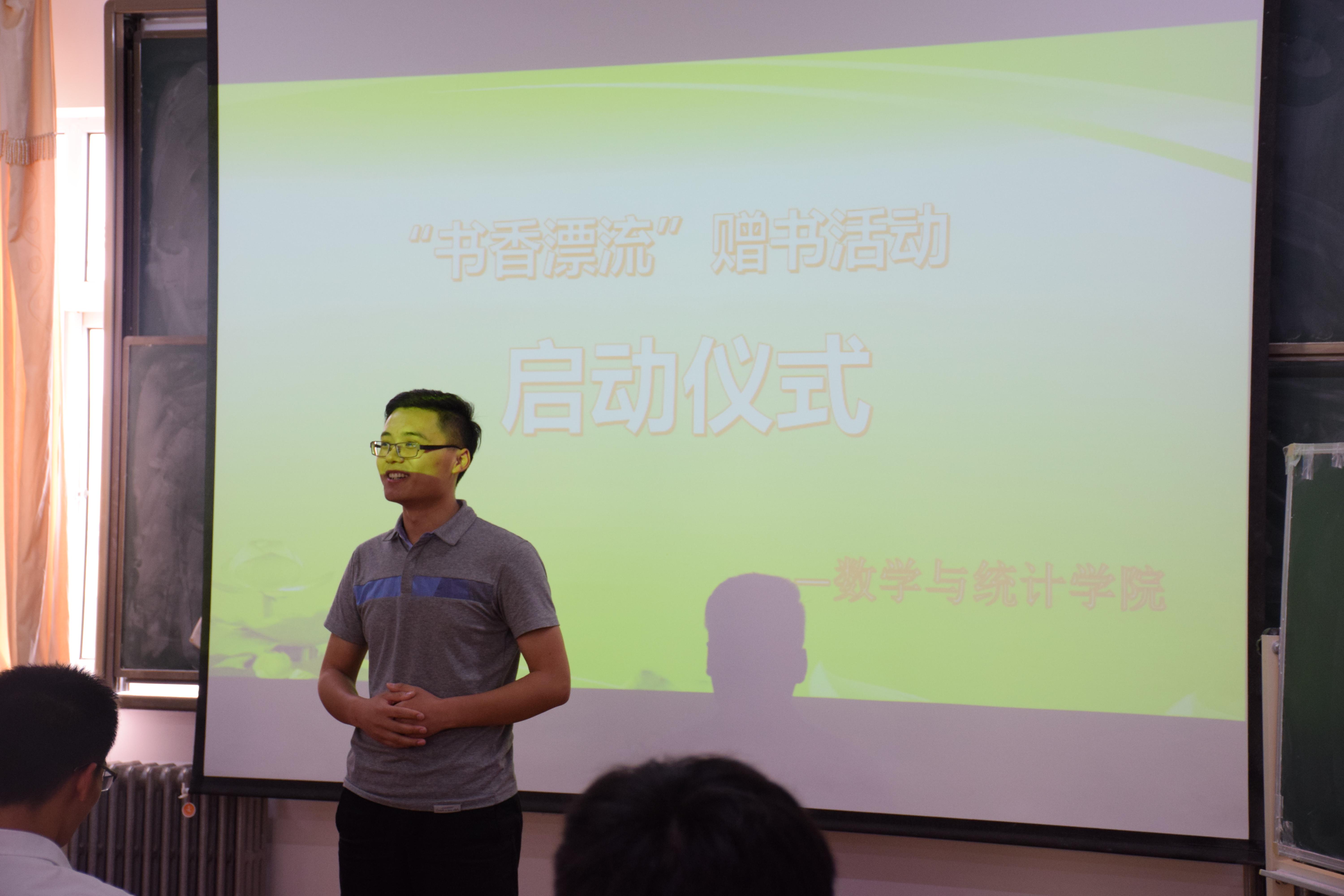 5月20日下午,数学与统计学院团委书记王彦参加了“书香漂流”活动启动仪式,耿德发、韩世涛代表毕业生发言,张如会、王乾代表其他年级同学发表了感言并向他们赠送了纪念册。进仪式结束后,同学们有秩序的完成了第一批书籍的领取。