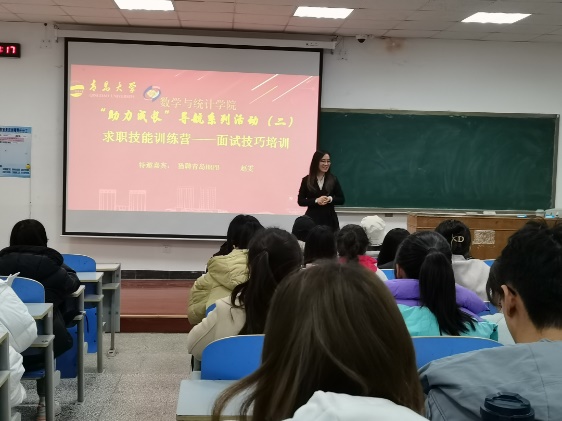 2021年12月2日,tyc7111cc太阳成集团在太阳成tyc7111cc浮山校区博知楼102教室举办了面试技巧培训的讲座,本次会议的主讲人是现任职猎聘山东HRBP的赵雯老师。tyc7111cc太阳成集团全体同学参与本次讲座。
