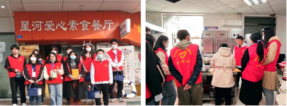 关爱无大小,温暖汇星河——星河素食爱心餐厅义工活动。3月11日、18日、25日,澎π部分成员前往星河素食爱心餐厅开展义工活动。志愿者们协助厨师烹饪食材、装盛打包饭菜等,为附近社区的老人们送去免费午餐,并帮助餐厅工作人员完成收拾碗筷、清洁桌面等打扫工作。同学们竭力为老人们提供温馨舒适的就餐体验,获得了餐厅创始人刘阿姨以及受助老人们的一致好评。