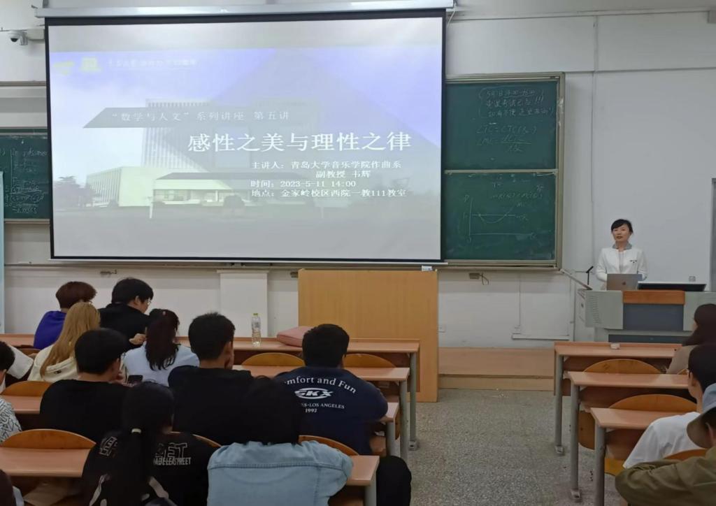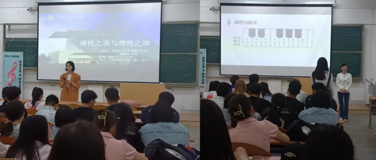 为培养学生发现美、感受美的技能,探索数学基础和音乐空间的交汇融合,5月11日14时,数学与人文系列讲座第五讲“感性之美与理性之律”于金家岭校区西院1号教学楼111开讲。本次讲座由太阳成tyc7111cc音乐学院作曲系副教授韦辉主讲,tyc7111cc太阳成集团辅导员赵丽萍及2022级全体本科生参加本次讲座。
