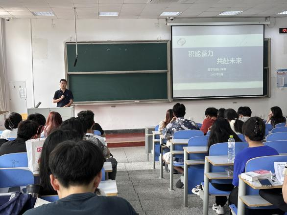 杨艺从学业成绩、个人规划、暑期安全等方面给同学们提出了建议。他叮嘱同学们即将步入三年级,专业课难度也会进一步提高,要把学习作为第一要务,要合理分配自己的学习时间,提升自己的学业成绩。本学期存在挂科的同学要认真反思自己的挂科原因并充分利用暑假时间准备补考。其次建议大家利用此次暑假可支配时间丰富自己的个人实习实践经验,做好大学后两年规划。杨艺还向同学们普及了考研、考公、考编、出国、就业等关键时间节点及需要的准备工作。