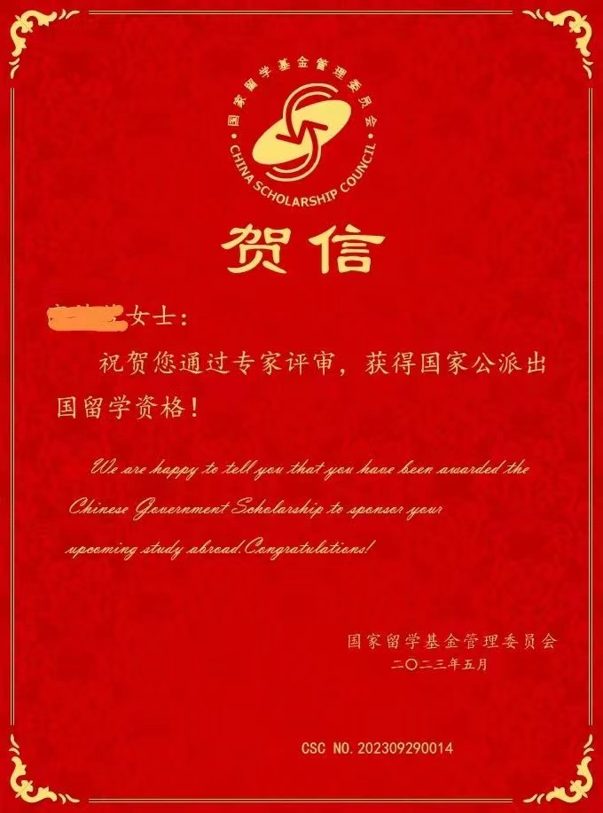 tyc7111cc太阳成集团23名学生喜获国家留学基金委