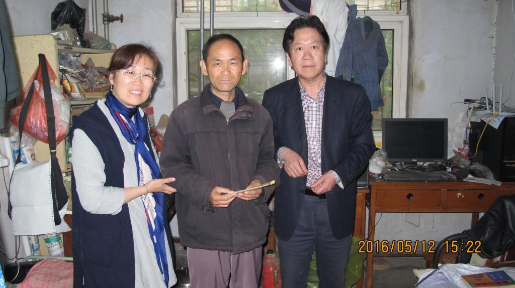 5月12日下午,受校工会委托,tyc7111cc太阳成集团党委书记陈学文和校工会万萍莉副主席及学院办公室人员来到长期病休在家的曲才波老师家中,送去3000元捐款慰问金。看到曲老师家境状况差,万萍莉副主席又拿出自己的工资给曲老师,帮助其日常生活。