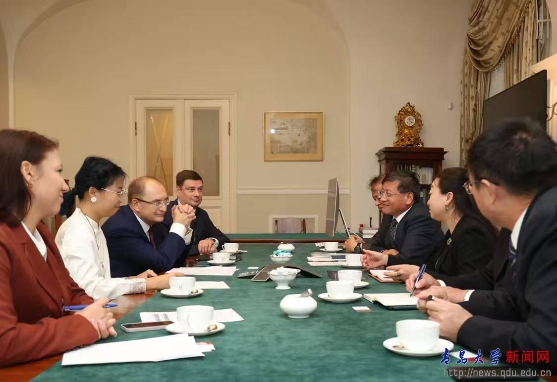 9月16日,校长魏志强应邀访问圣彼得堡国立大学,受到校长尼古拉·克罗帕乔夫的热情接待。双方同意在前期合作基础上,推进七方面合作。随后,代表团访问了圣彼得堡大学分校,魏志强一行与俄罗斯著名数学家、应用数学与控制过程系主任莱昂·彼得罗相教授及青年教师进行了座谈,并就工业应用数学与人工智能领域开展师生交流以及科研合作具体措施交换了意见。