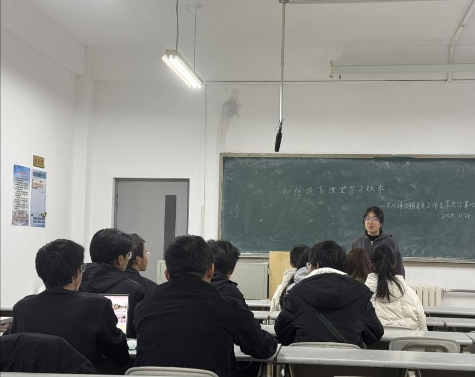 为帮助同学们有效提高课堂学习效率,激发学习兴趣,我院11月24号晚于金家岭西院2号楼304开展了“学风建设辅导员工作室活动‘学思汇’第七期——如何提高课堂学习效率”主题活动。该活动由学术中心志愿者刘欣宇主持。