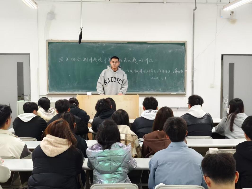 综合测评成绩的准确性和公正性直接关系到每一位学生的切身利益,为加强2024级学生对综测成绩的了解,3月9日晚,我院于金家岭西院2号楼304开展“学风建设辅导员工作室活动‘学思汇’第十三期——有关综合测评成绩计算的相关问题的讨论”。该活动由学术中心志愿者刘欣宇主持,2024级各班班长,团支书和副班长参加。
